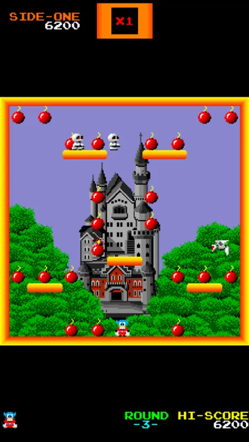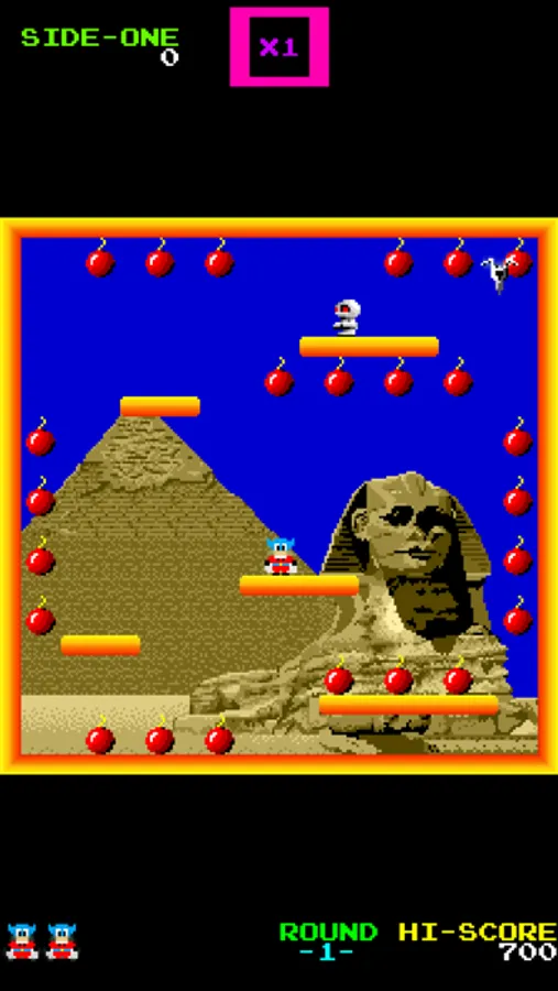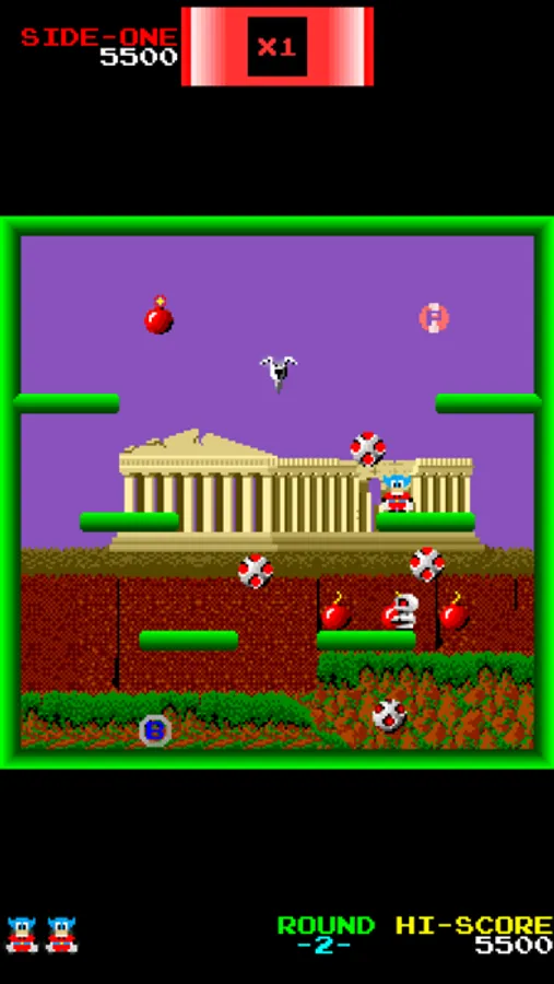 You control Bomb Jacke throughout the game. Bomb Jacke one and only mission is to collect all of the bombs in the stage before moving on to the next and collecting more. In his way will be several enemies which will seek to stop him. Bomb Jacke will lose one life any time he comes into contact with any of the enemies. There is no time limit, so Bomb Jacke can take as long as he needs to clear the stage. However, the longer you wait, the more likely it is that the enemies will overwhelm him. Bomb Jacke can turn the tables on his enemies by collecting a power coin (P), which will temporarily turn all of the enemies into coins which he can collect. Whether Bomb Jacke earns extra lives by reaching certain coins.