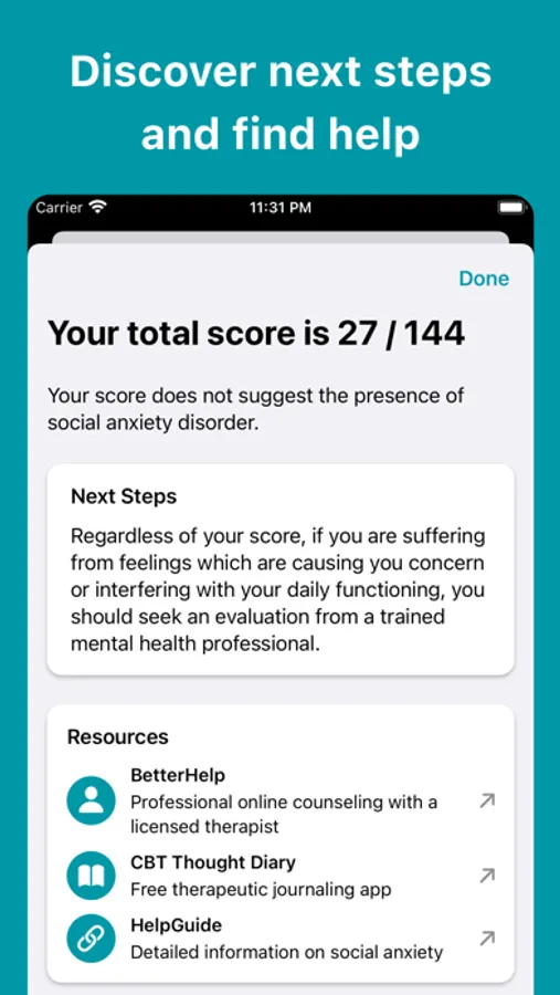 Disclaimer: This questionnaire cannot indicate a diagnosis of social anxiety disorder. Only a qualified professional can make this diagnosis. Please consult a physician if you are concerned about social anxiety disorder.