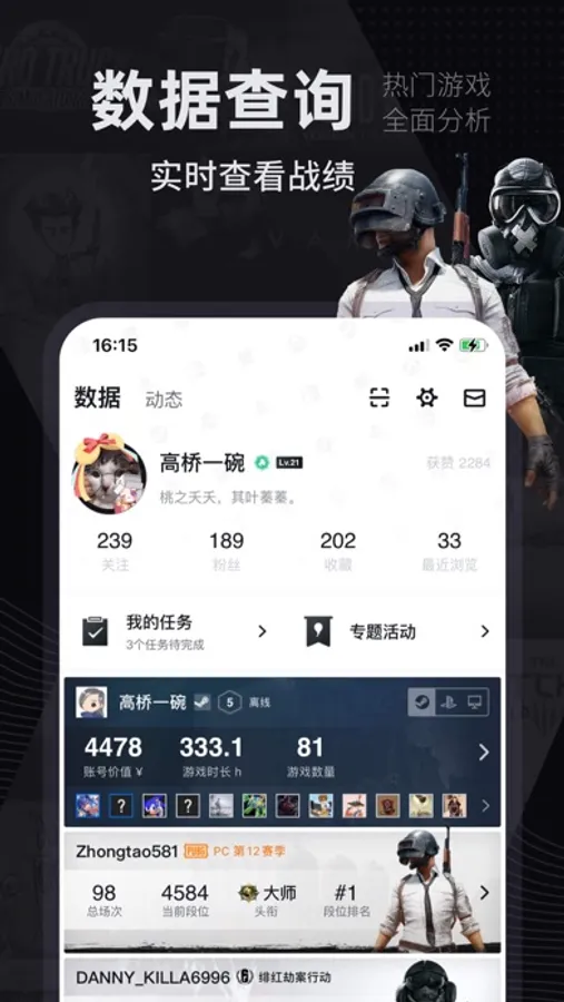 战绩查询:无畏契约、APEX、绝地求生、原神、永劫无间、命运2、彩虹六号、使命召唤、刀塔自走棋、CSGO、喷射战士、魔兽世界等热门游戏战绩查询一站搞定!
