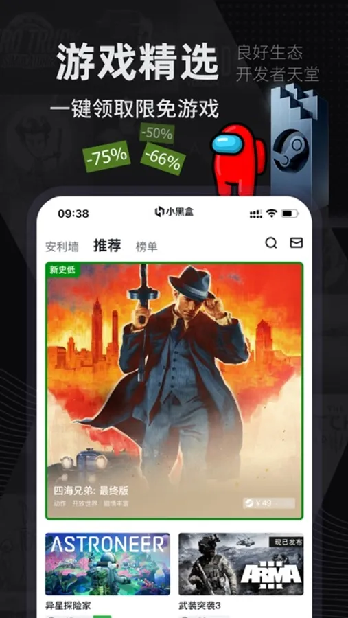 小黑盒游戏库包含Steam、EPIC、Switch、Xbox、PSN已经/将要发行的所有游戏,可以轻松查询价格波动、配置需求、游戏评价、史低特惠等重要信息。