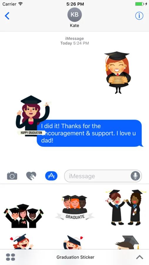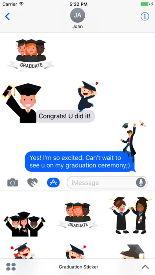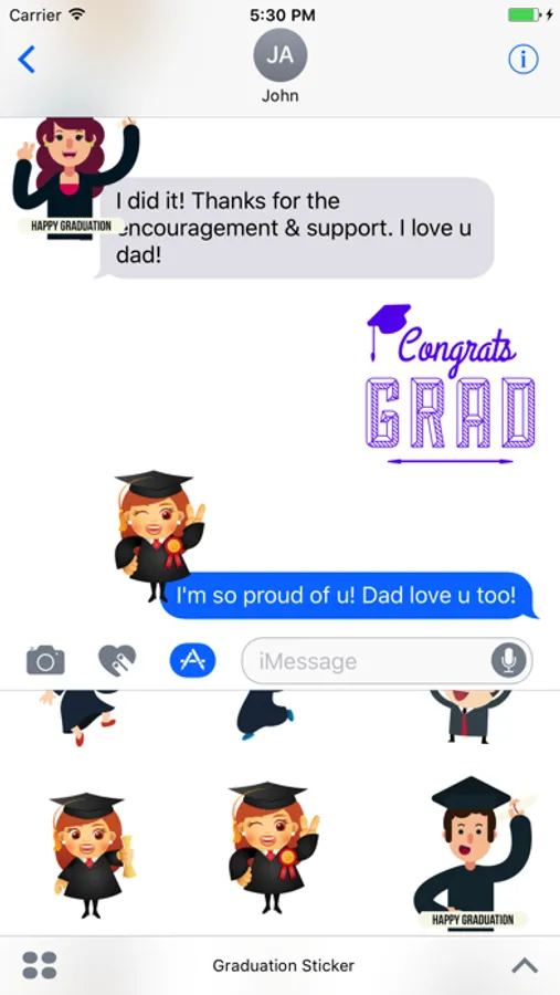 Thinking of sending congratulatory messages instead? Then try our Graduation Sticker pack as well. With more than 30 stickers available you can now send congratulatory and well wishes to all the graduates within your circle of family and friends who will be graduating soon.