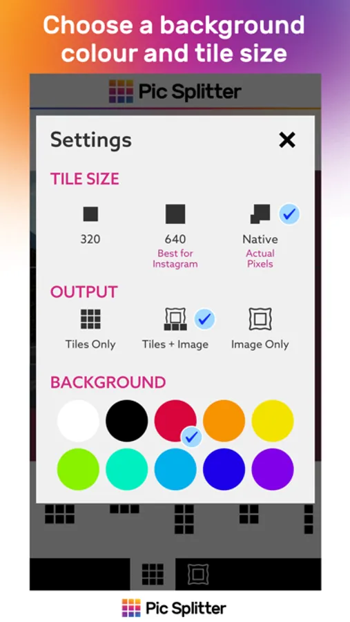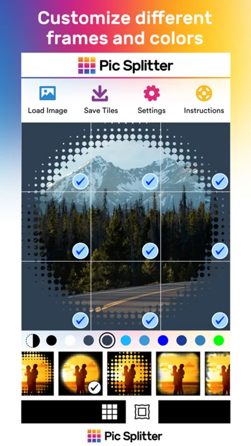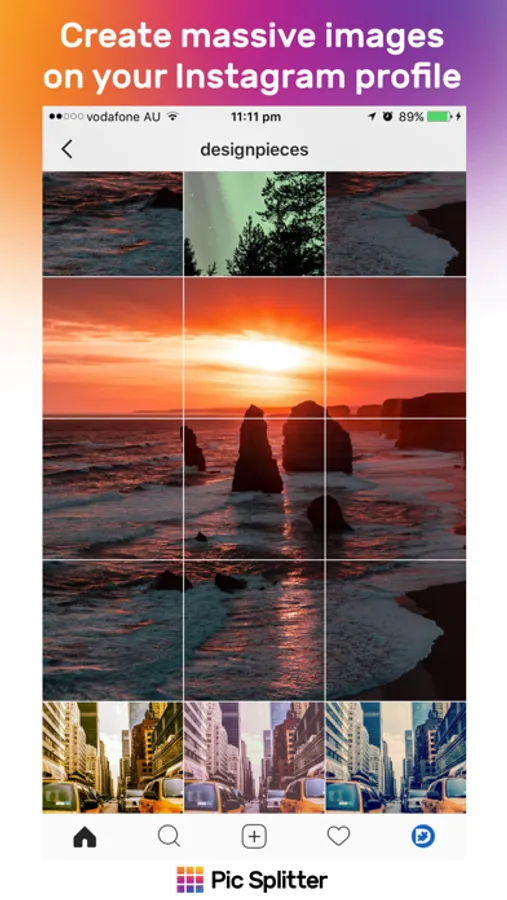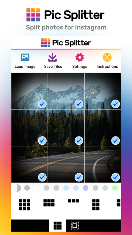 - Create photos that span your whole Instagram profile feed (up to 3x3 size)