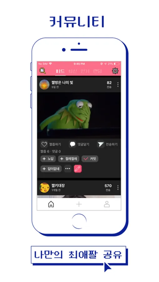 게다가, 메인앱에 들어가면 모두가 자신의 최애짤을 공유하는 짤방 커뮤니티가 있답니다~