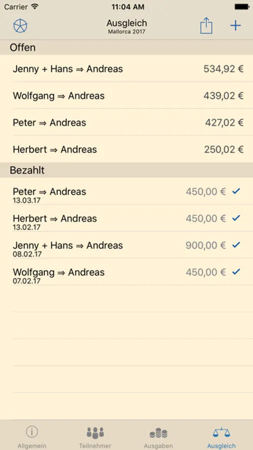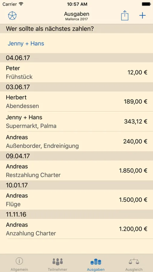 Wer sollte als nächstes bezahlen? Wer schuldet wem wieviel?