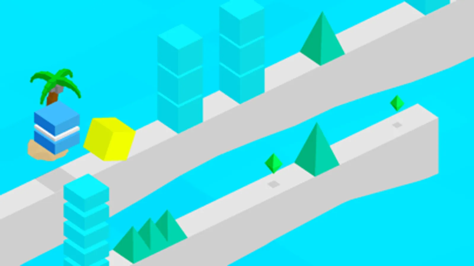 Guide your cube through the platforms avoiding obstacles by jumping and switching sides.