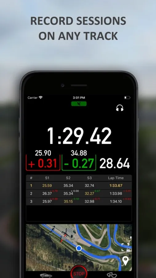 ∙ Realtime results display and voice announcements of your lap and sector times