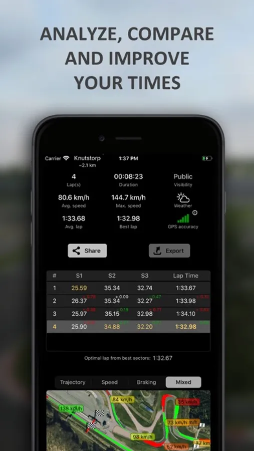 Record, analyze and compare your performances! Follow your friend live on the track and share your best sessions with them.