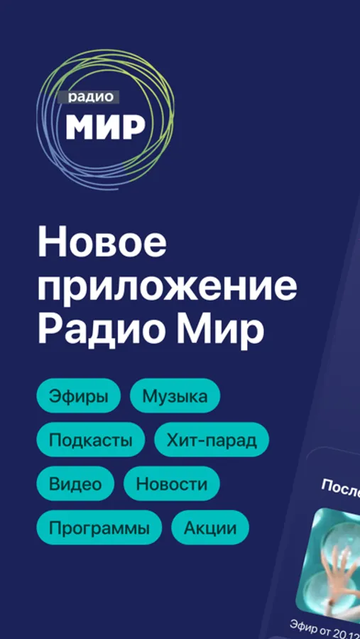 Мобильное приложение популярного в Беларуси радио «Мир» позволяет слушать прямые эфиры, смотреть online-трансляцию из студии, связаться с ведущими, быть в курсе важных новостей Беларуси и стран СНГ (экономика, политика, бизнес).