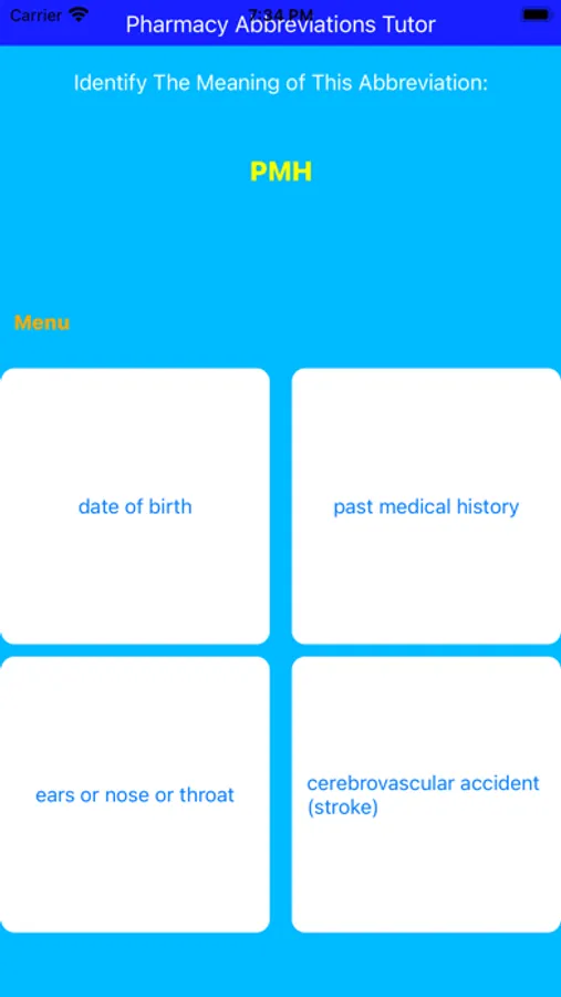 Pharmacy Abbreviations Tutor is an app designed to learn many of the codes, shorthand and abbreviations for written prescriptions and medication and medical orders including the medical and pharmacy terminology roots words, prefixes, suffixes as well as common medical abbreviations.