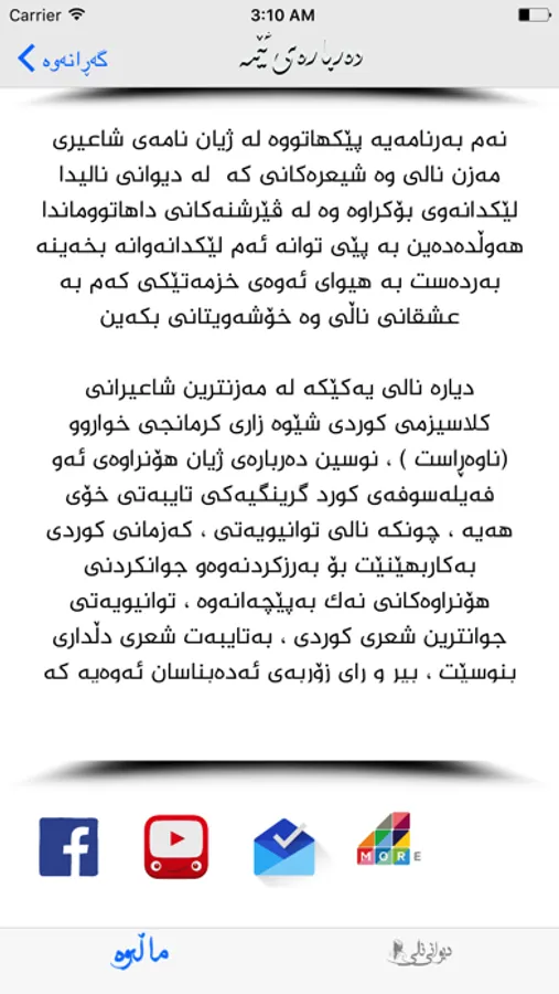 نەم بەرنامەیە پێکهاتووە لە ژیان نامەی شاعیری مەزن نالی وە شیعرەکانی کە لە دیوانی