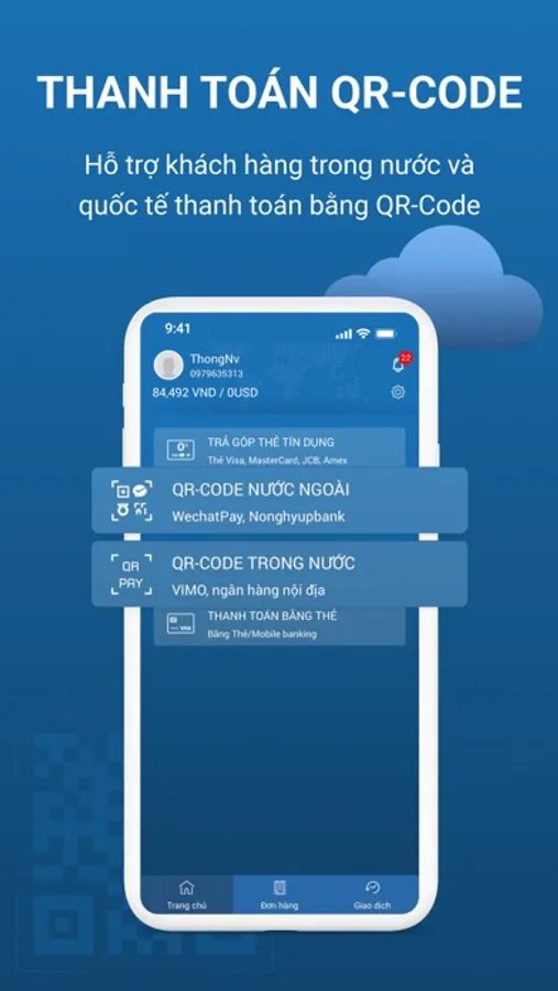 Ứng dụng tiên phong trong lĩnh vực thanh toán QR-Code trên thiết bị di động dành cho các điểm bán hàng. Hỗ trợ đa phương thức thanh toán, đa tiền tệ, không phí cài đặt, không phí duy trì, chỉ thu phí trên giao dịch thành công. Hỗ trợ rút tiền ngay trong ngày về hầu hết các ngân hàng trong nước.