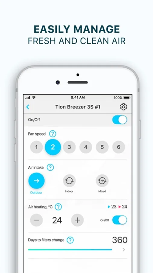 - Choose how to manage your air! Set comfortable parameters for the breezer performance and control it remotely using the Bluetooth technology.