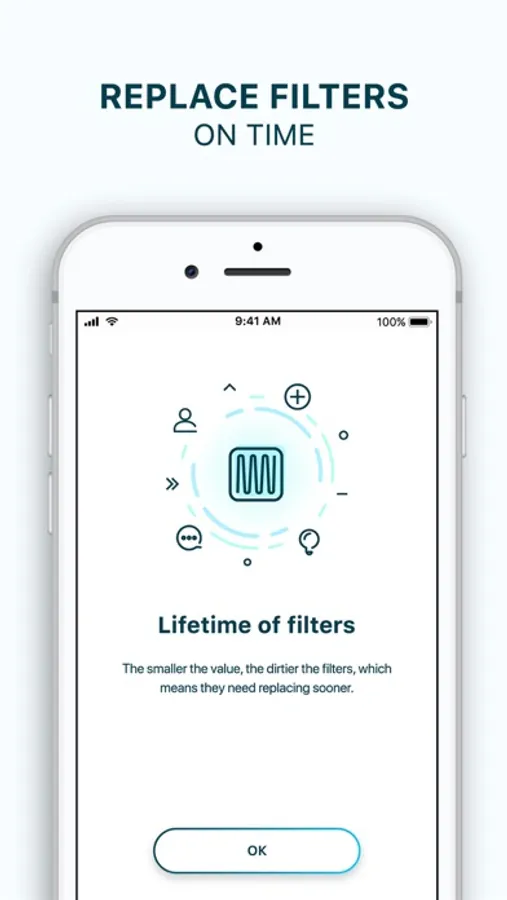 - Make sure to replace filters on time! The App displays the lifetime of the filters, which allows you to always remember about timely replacement.