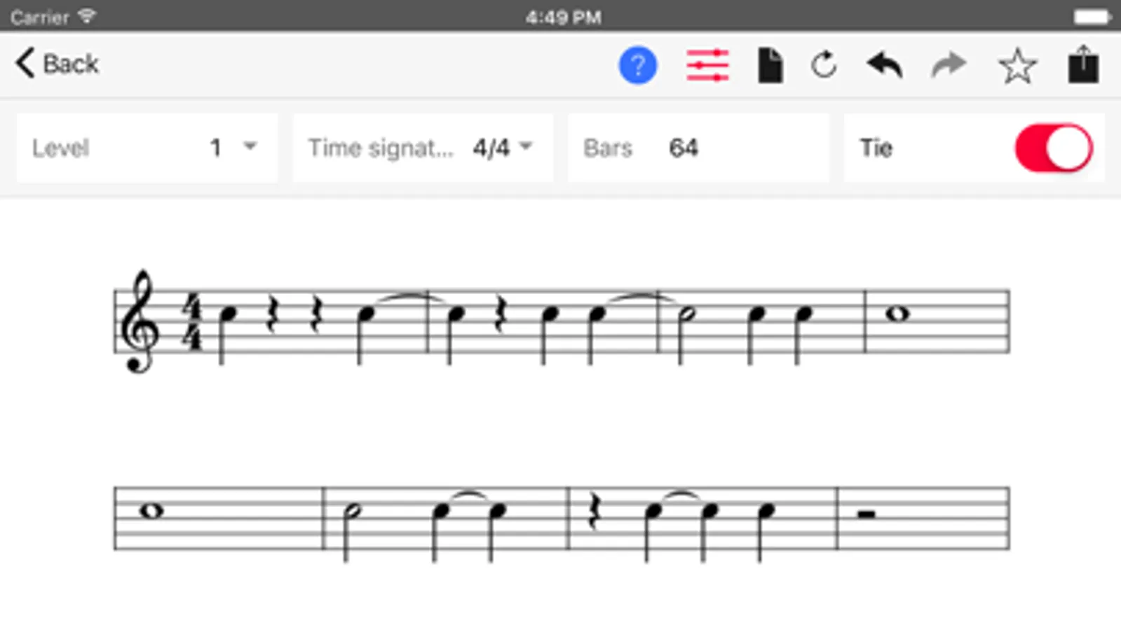 With just a few "clicks", create infinite different rhythmic reading exercises. All you have to do is decide the level of difficulty, the meter and the desired number of bars, and the score is ready! 12 levels will lead you "step by step" from the simplest exercises to challenging levels Pro 1 and Pro 2.
