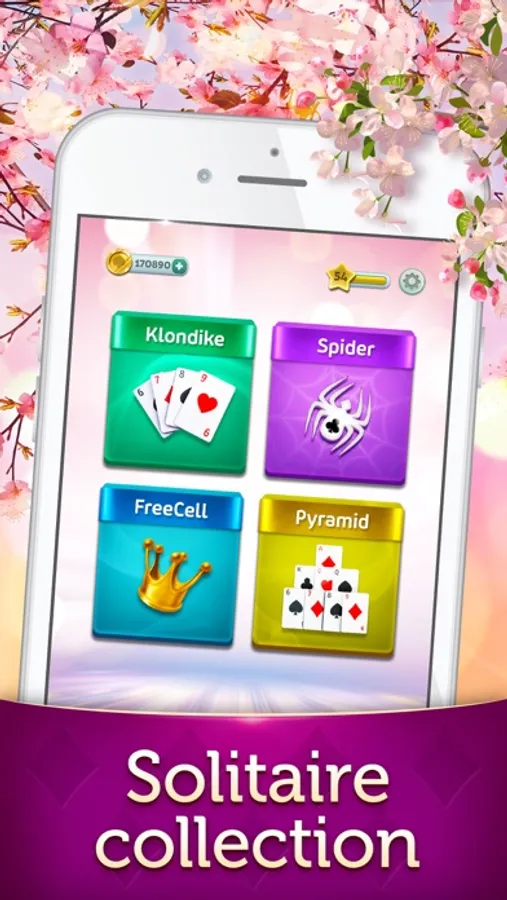 * Play variety of lovely classic, vintage klondike, and pyramid card games
