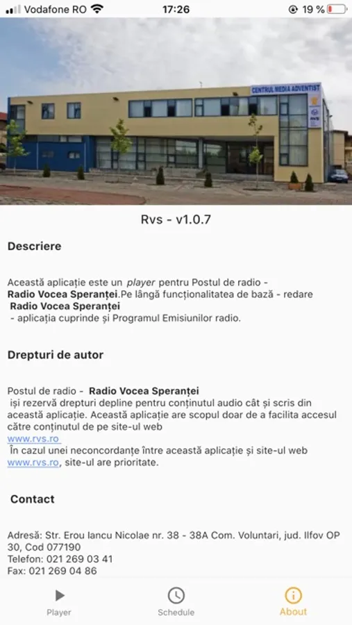This application is a player for the "Radio Vocea Sperantei" a Romanian local radio.