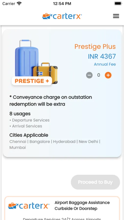 CarterX provides Airport transfers and Cargo Transfers with exclusive and economical rates for up to 32 Kgs for delivery and pick up any were in India. Subscriptions offer discount for Airport transfers on both airline and non airline services. Our service is personalized and is highly professional. The end to end service is fully insured. The pick up and drop service is diverse and personalized to the needs of every traveller: Individual, Business or Corporate. We provide a fully transparent and transaction can be tracked from booking to delivery. Our Services: Booking online (email) and offline (sms) confirmations once you make a booking. On the day of the service, the porter allocated to pick your order at location specified location/airport will be allocated with number (for easy identification). The porter will wait with a board at the airport arrival area for easy identification. Rest easy on the flight knowing that there is a porter allocated to pull the weight for you, Domestic or International. Security declaration for departure bookings from the passenger and meeting CarterX Porter is compulsory before entering the airport, luggage cannot be brought into the airport if CarterX personnel is not met. The luggage is weighed, images are taken and carefully packed in tamper-proof bags for transit. The handles and trolleys will no longer be available once we pack the luggage. The luggage then is bar-coded and images of the same are uploaded. All images are available for view in each order under 'Manage Orders' section of the application. Alerts of your luggage transfer will be available at every step via sms or email.