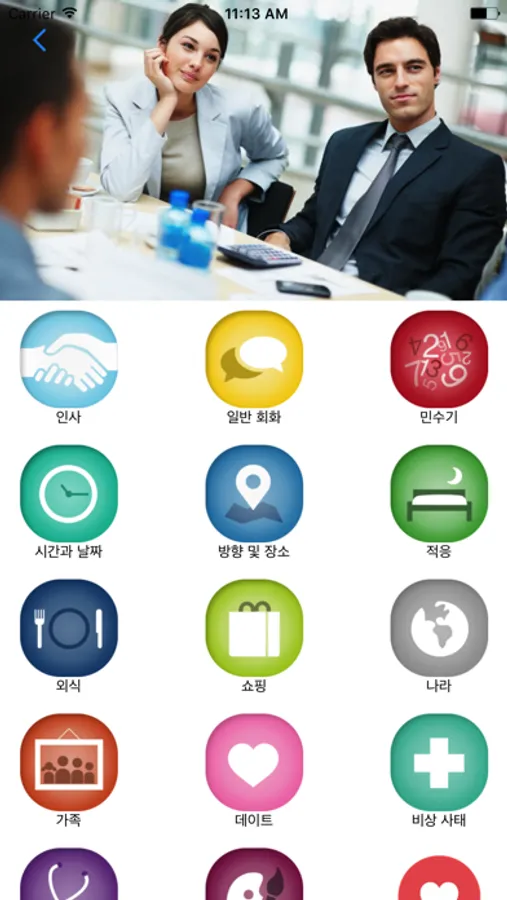 - Learning easy with full categories: greetings, general conversation, numbers, time and date, directions and places, accommodation, eating out, shopping, countries, family, dating, emergency, tourist attractions, colors.