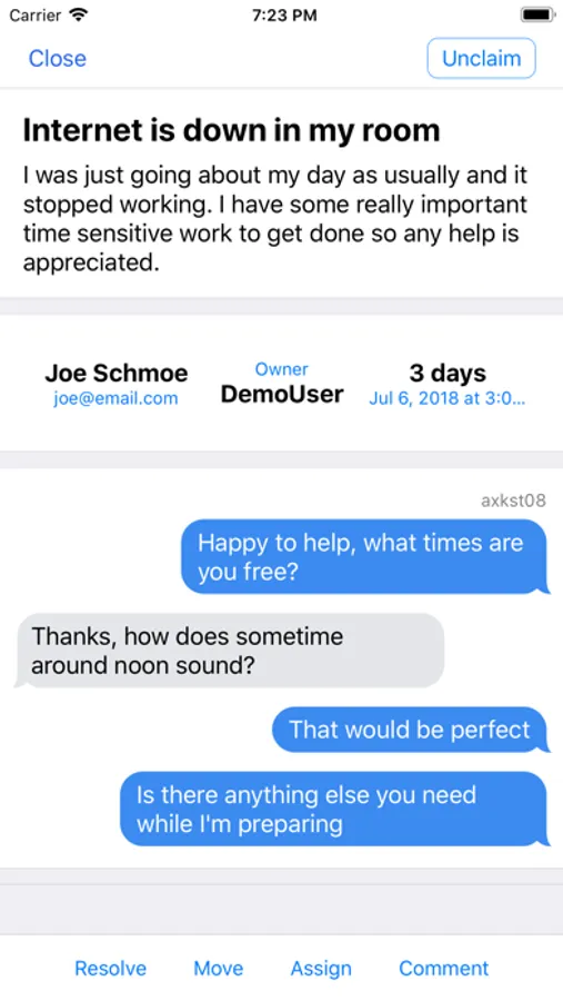 - Filter open/owned/unowned/resolved tickets