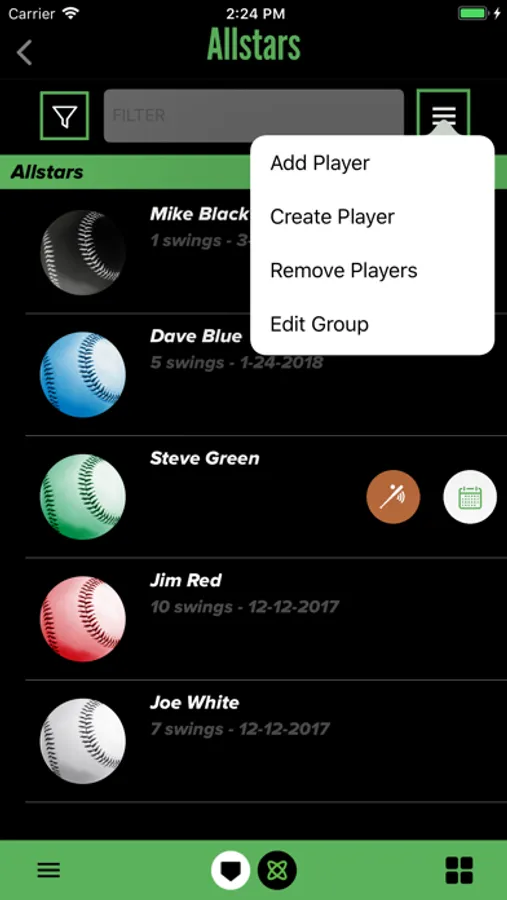 A few accessory functions are also included to aid in the app’s main goal of quickly collecting information. The user is able to create a new group in which to organize players, the user can add additional players to an existing group a, the user can create a new player profile, and the user can contact support with any questions or requests.