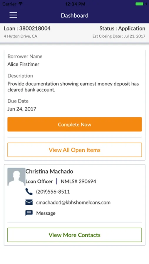 - “Call Your Mortgage Loan Originator” feature connects you directly through the app