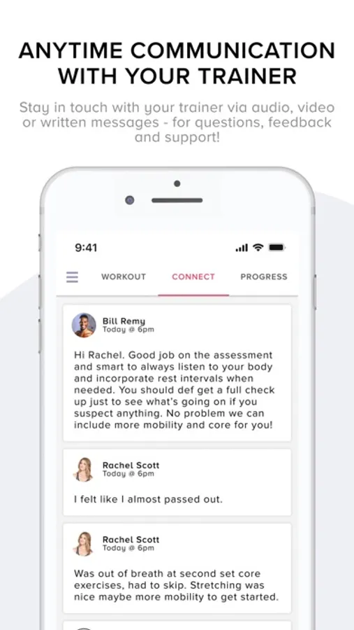 Schedule and execute your workouts at a time and place that works for you, and send feedback to your coach via text, voice and/or video messages - no need to commit to a time slot! Your workouts are tailored to your environment so you can do them at home with a few dumbbells, at the gym with full weights, or at a hotel using just body weight.