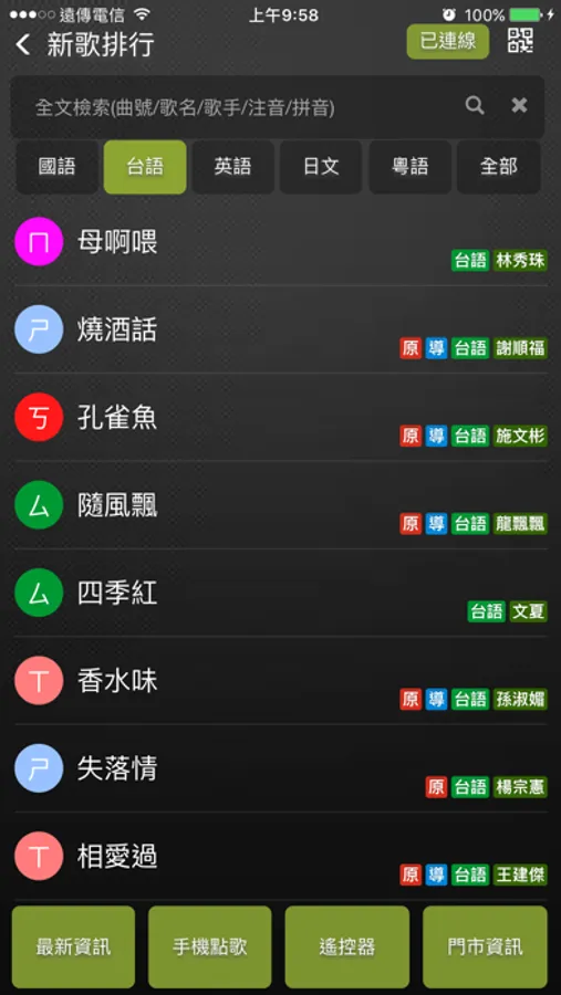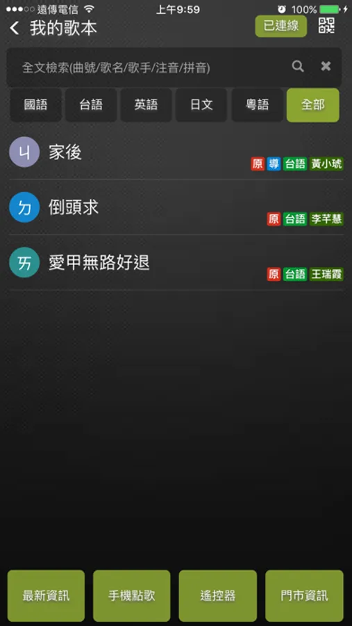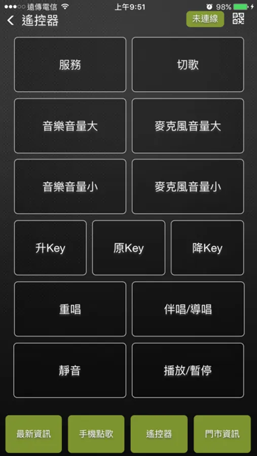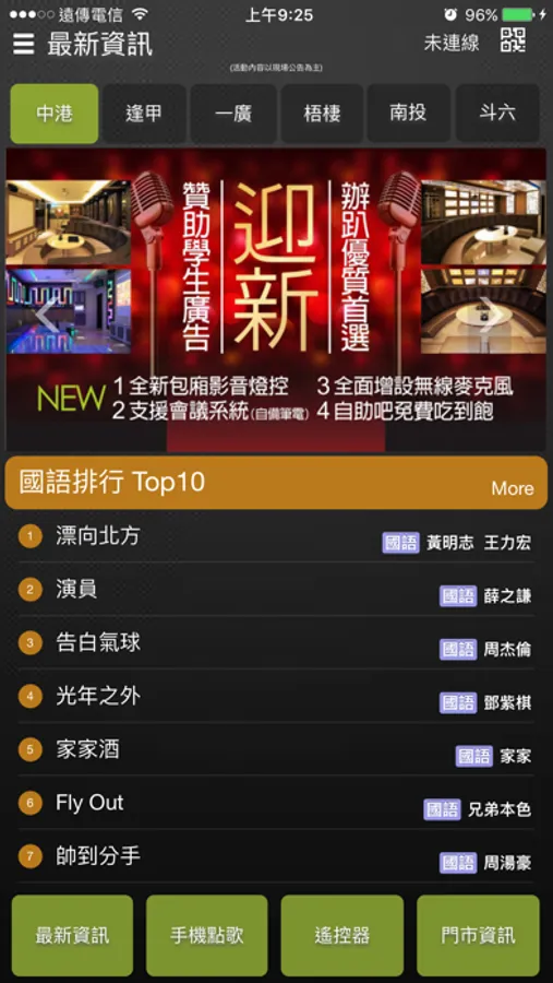 透過APP可取得各分店的最新活動訊息,並可使用點歌功能、遙控器與包廂互動連結。