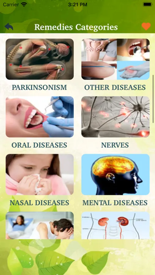 In the Home Remedy app the diseases are divided in to 30 categories and each category contains its related diseases. There are about 600 diseases and more then 15,000 remedies for those diseases.