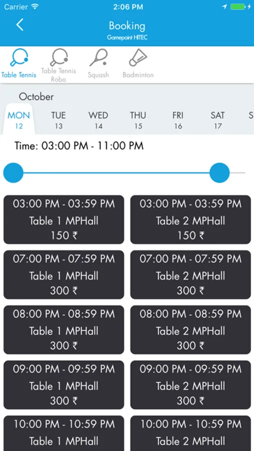 You can book slots for Badminton, Squash, Table Tennis, Cricket, Foot ball, Tennis.