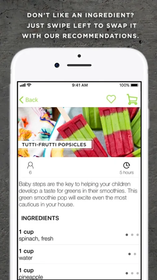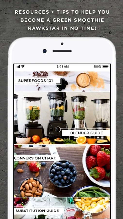 I LOVE this app from the Simple Green Smoothie people. The app is gorgeous and easy to use. I love that they give you options to swap out ingredients if you don’t like something. The Random Recipe is fun...just give your smartphone a little shake to see what you get (reminds me of the magic 8 ball). This app makes blending easy and fun. The recipes are delicious! You won’t be disappointed with this app. I highly recommend it...Cheers! -PreludeK8
