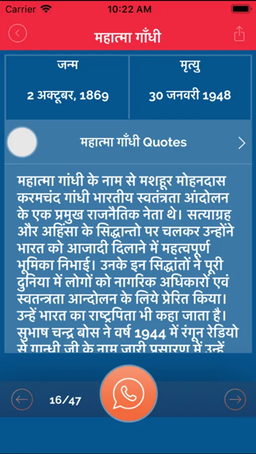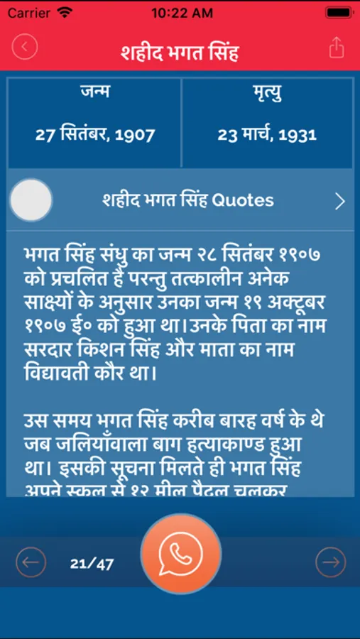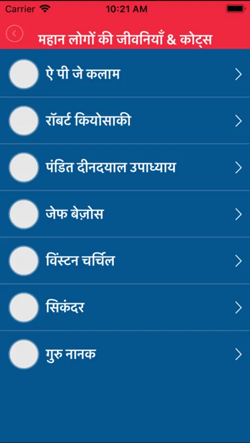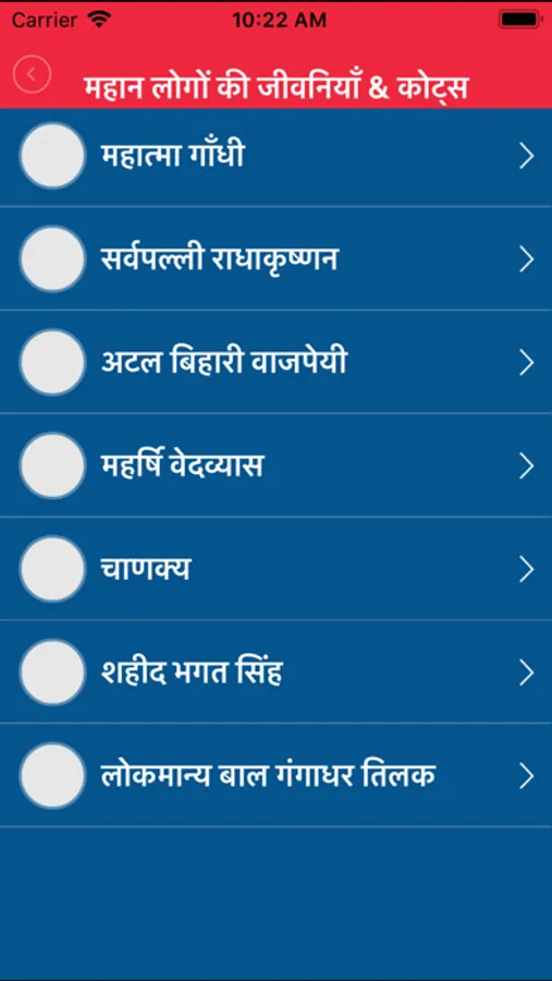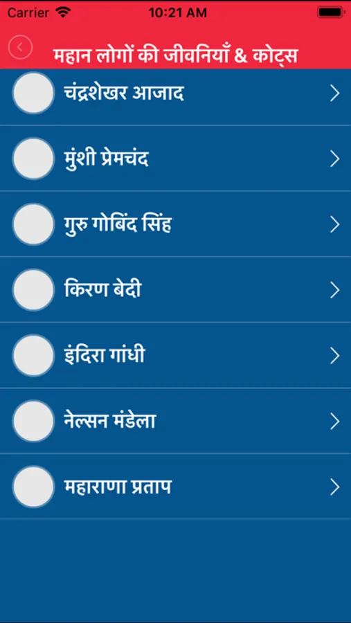 Using this application you can read biographies of Krantikariyo( क्रान्तिकारियों), Shahido(शहीदों) or other Great Peoples.