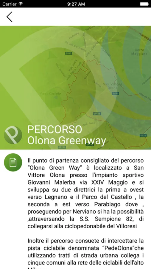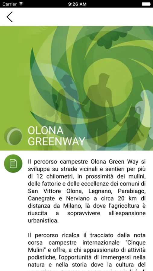 Olona Green Way è un percorso di circa 10 Km nei Comuni di San Vittore Olona, Legnano, Parabiago, Canegrate e Nerviano a circa 20 km di distanza da Milano, là dove l'agricoltura è riuscita a sopravvivere all'espansione urbanistica, grazie anche alla presenza del fiume Olona.