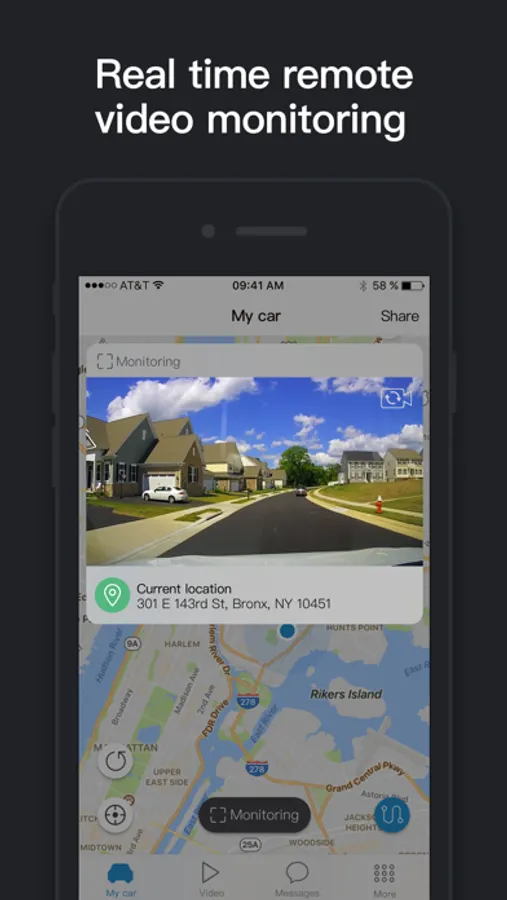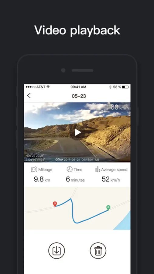 Though Goluk Care mobile client, you can remotely manage your Goluk M1 Dashcam, monitor real time video, review GPS tracking of your car, browse or download videos stored in dashcam or share your car location to your family when driving.