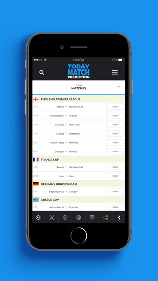 Today Match Prediction is an intuitive predictions app, created by an experienced sports team to help you get the most out of your soccer bets. To give it a try is a no-brainer!
