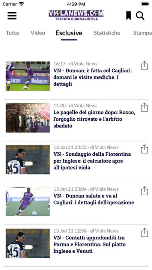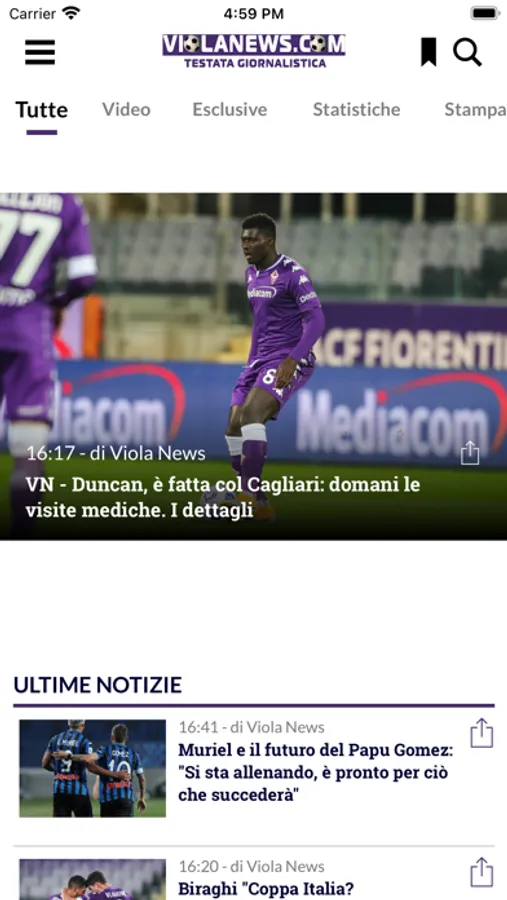 Violanews è il sito dedicato alla Fiorentina più seguito dai tifosi viola. Notizie, fotografie, video tutti i giorni dalle 7:00 alle 24:00.con un forum di tifosi frequentatissimo. Inoltre tutte le partite in diretta della Fiorentina e della Primavera con interviste e pagelle in tempo reale. Interviste esclusive e commenti di noti opinionisti fiorentini. Infine ampio spazio ai social come Facebook Twitter e Instagram.
