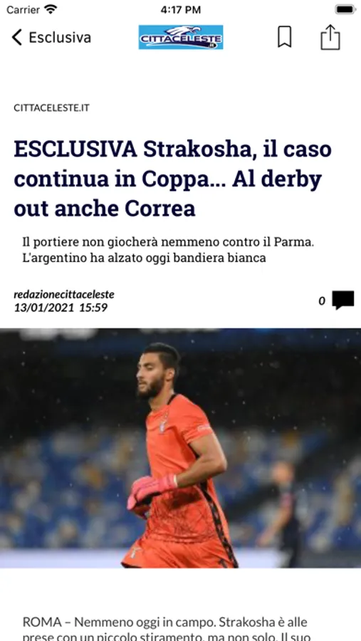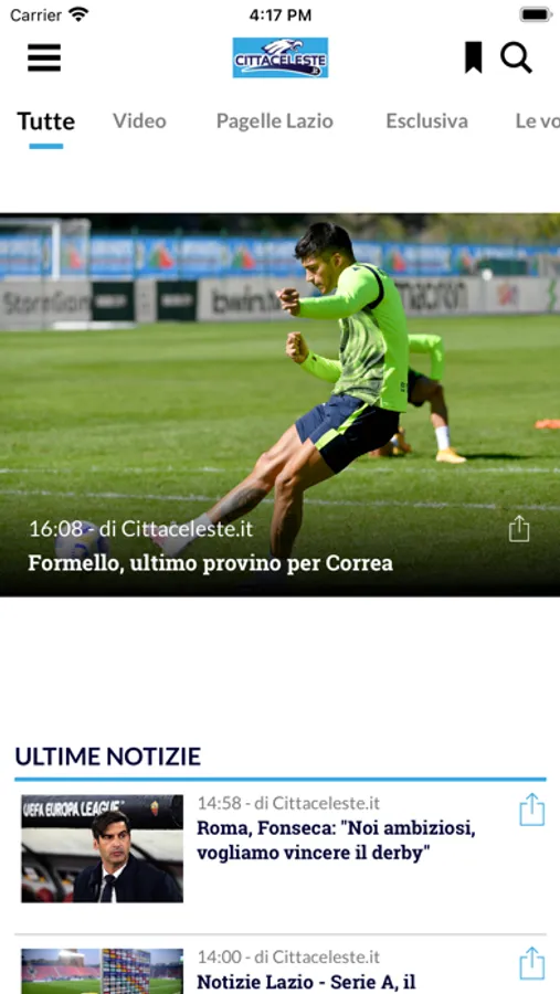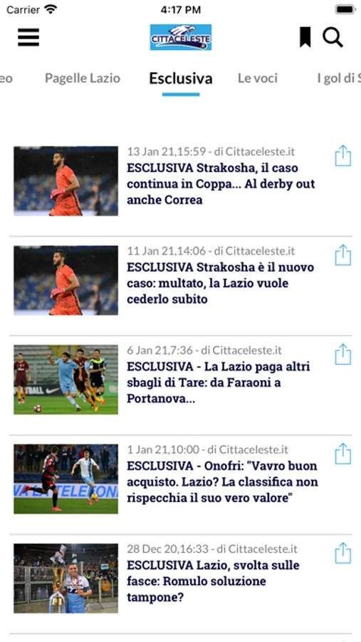 Cittaceleste.it il primo sito internet dedicato ai tifosi della Lazio. Decine di notizie al giorno. Tutte le ultime news di calciomercato. Interviste, opinioni, focus e approfondimenti. Con uno speciale impatto giornalistico in occasione di ogni gara ufficiale, in Italia e all’estero, della prima squadra della capitale. Live dell’incontro, inviati, pagelle e contributi dei protagonisti. Insomma, una vera e propria sorgente d’informazione per ogni tifoso della Lazio. Tutto questo è cittaceleste.it. Il sito più cliccato dai tifosi della Lazio.