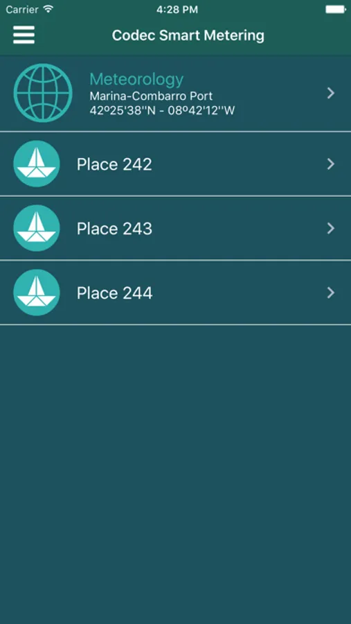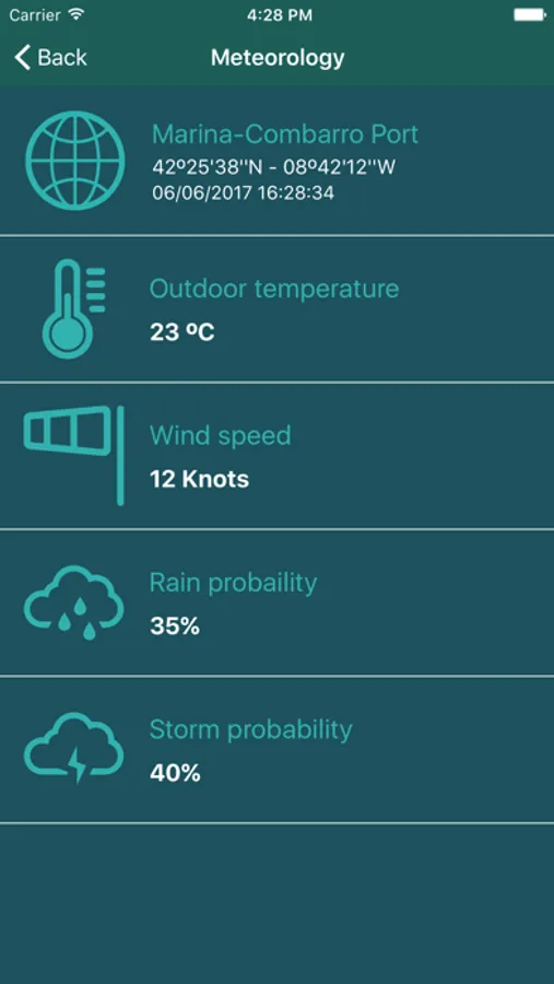 Aplicación para el puerto deportivo de Marina-Combarro. Permite a los usuarios visualizar las plazas contratadas, consultar la energía eléctrica consumida por cada plaza en los últimos meses y poder activar y desactivar la electricidad de ellas. También permite recuperar los datos meteorológicos del puerto.