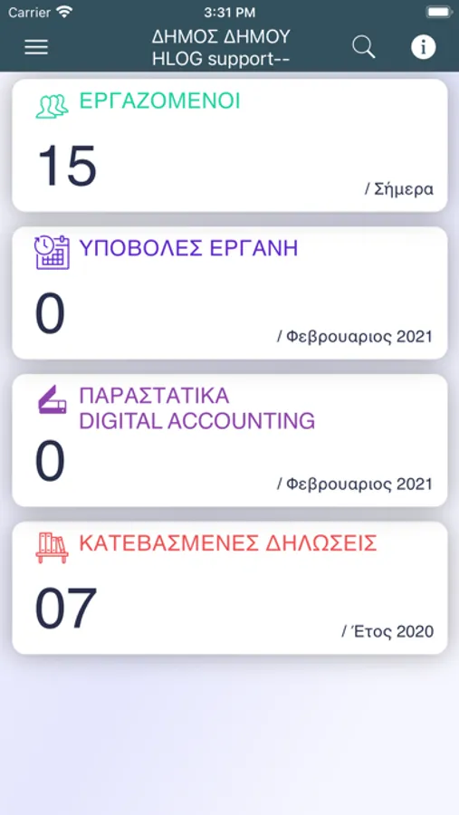 -- Δυνατότητα περιήγησης στην εφαρμογή με χρήση των δοκιμαστικών δεδομένων (demo)