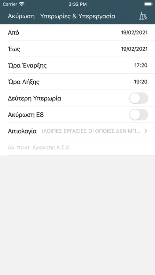 -- LIVE Υποβολή Υπερωριών / Υπερεργασίας στο Π.Σ. ΕΡΓΑΝΗ (E8)
