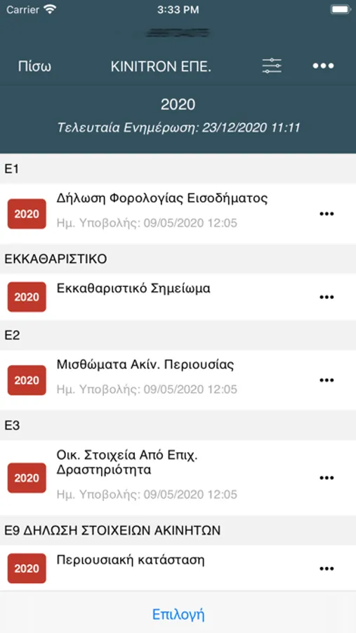 -- Προβολή των υποβληθέντων πινάκων Ε4 και Ε8