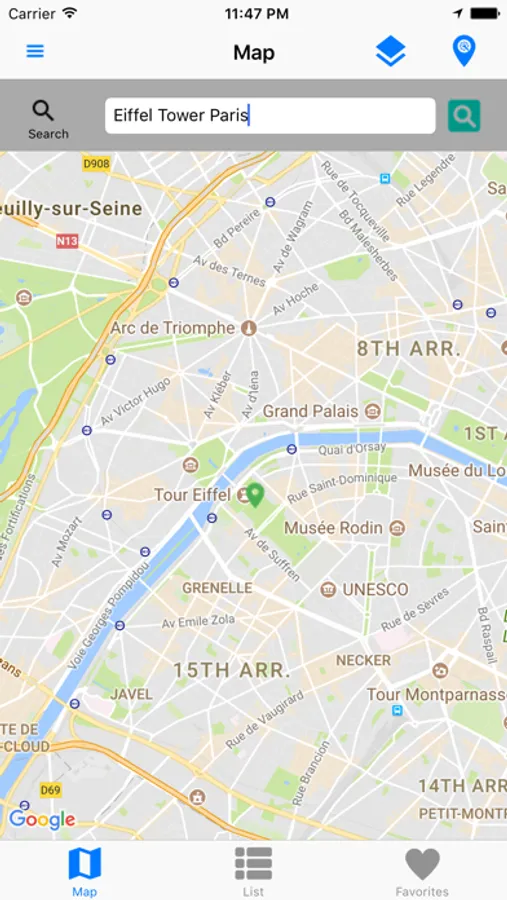 - Searching of places around your current location