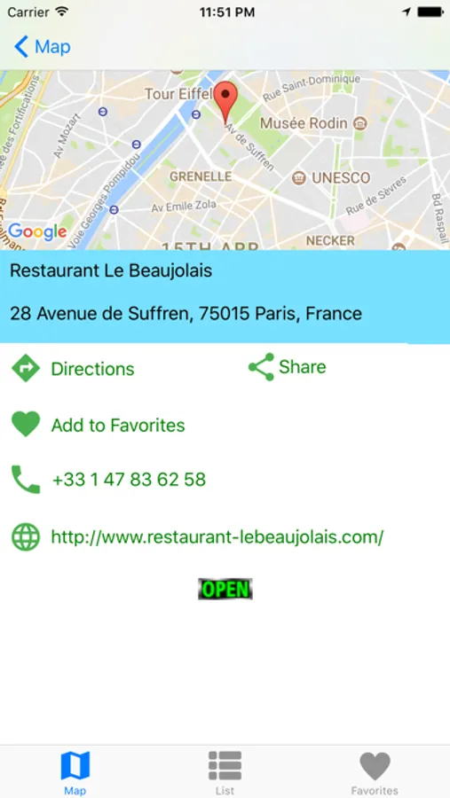 The Locator app provides you a convenient means of searching for places around you. With this app, you can locate various types of places (food, shopping, essentials, entertainment or tourists attractions) which may be of interest to you, wherever you may be. You can view details of each of these businesses surrounding you by tapping on the marker on the map or an item on the list view. Once here, you can get directions, share location, make phone calls or view the business' website (if it has one) all from within the app itself. You can also add the place to the Favorite List. The App works best when you also have Google Maps installed in your phone.