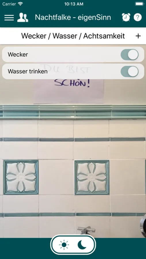 Du kannst Dich regelmäßig oder auch zufällig an Dinge erinnern lassen. Vielleicht daran, dass Du doch eigentlich mehr trinken magst im Laufe des Tages.
