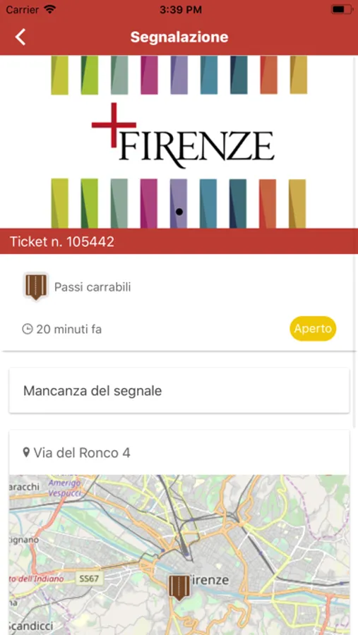 L'app più Firenze (ex ChiAmaFirenze) offre ai cittadini la possibilità di inviare, attraverso il proprio dispositivo mobile (smartphone o tablet), segnalazioni inerenti la manutenzione degli spazi pubblici e il degrado urbano in generale.
