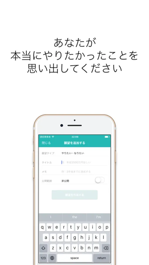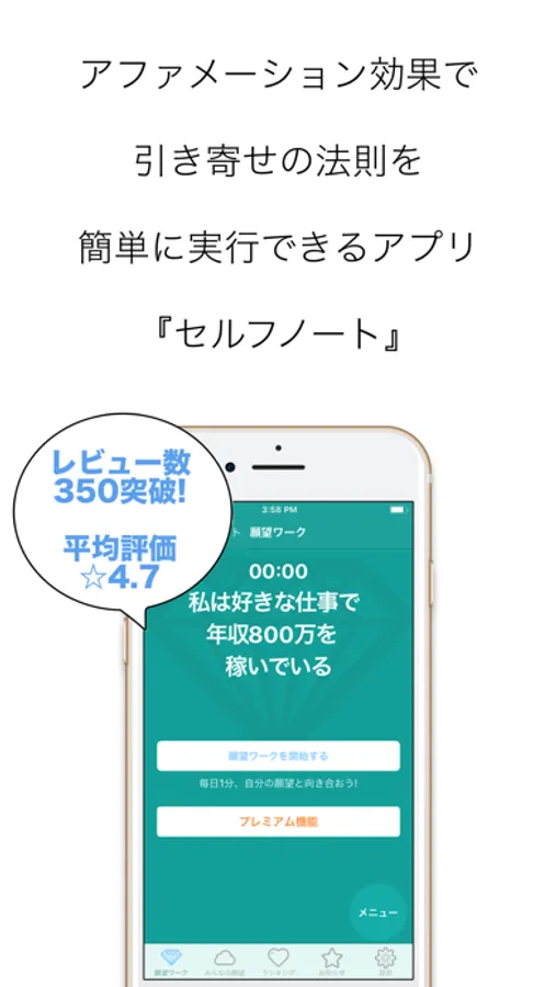 願望ワークをスマホアプリで、いつでもどこでもお手軽に実践することができます。