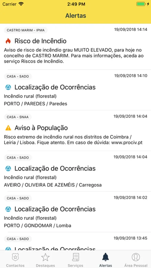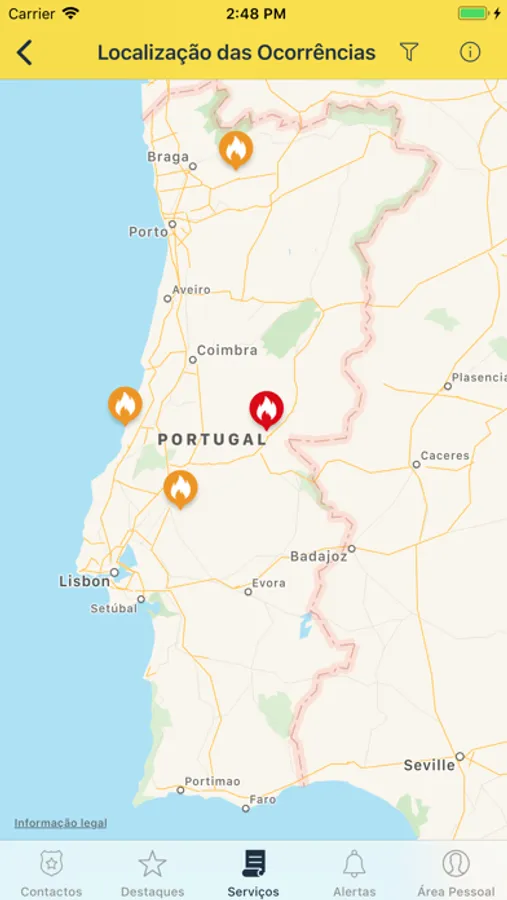 ● Apresentação geográfica da localização das ocorrências disponibilizadas pela ANPC.
