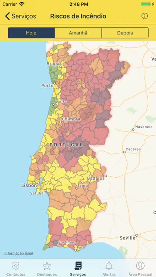 ● Apresentação geográfica do risco de incêndio definido pelo IPMA para 3 dias (hoje, amanhã e depois).
