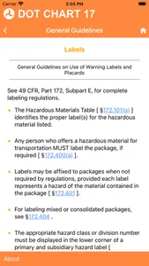 The Pipeline and Hazardous Materials Safety Administration’s (PHMSA) DOT Chart-17 provides a full-color display of the markings, labels, and placards specified in the Hazardous Materials Regulations (HMR; 49 CFR Parts 171-180). This mobile application allows shippers, carriers, and other stakeholders to quickly access visual information and HMR citations from DOT Chart-17.
