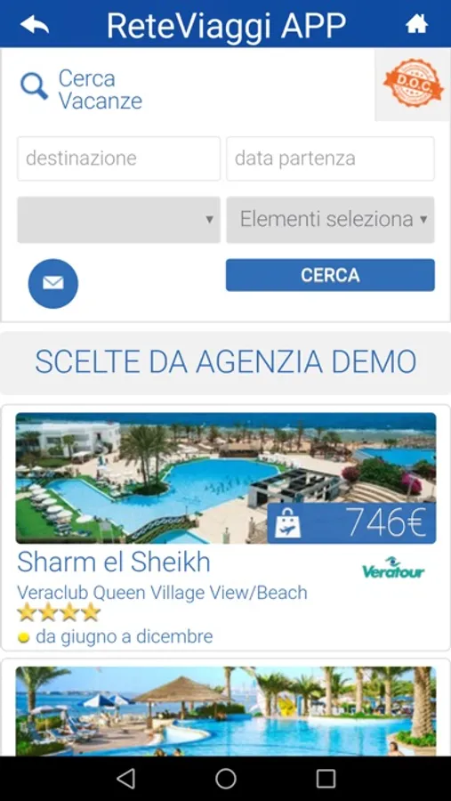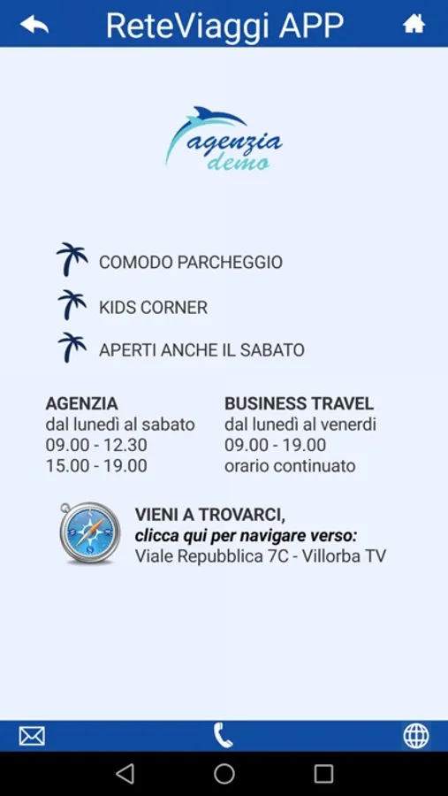 Questa APP ha solo funzione dimostrativa di servizi offerti alle AdV. I prodotti turistici presentati non sono acquistabili. Per qualsiasi informazione contattare Reteviaggi allo 0422 424092 o inviare una mail a commerciale@reteviaggi.com
