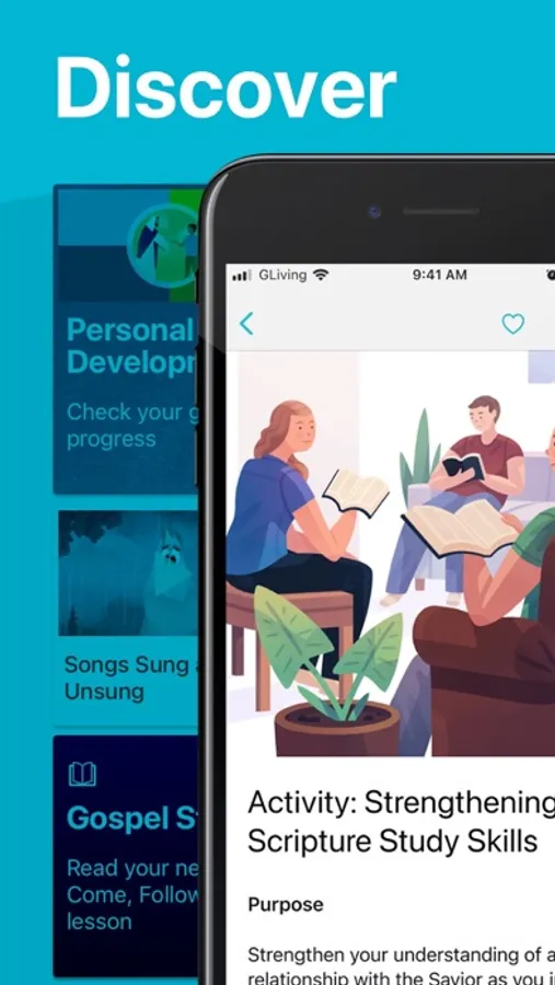The Discover feed is updated regularly with inspiring articles, videos, audio, and images. It will include links to current Come, Follow Me lessons to support gospel learning. Additionally, you can explore ideas for service, activities, and personal goals.